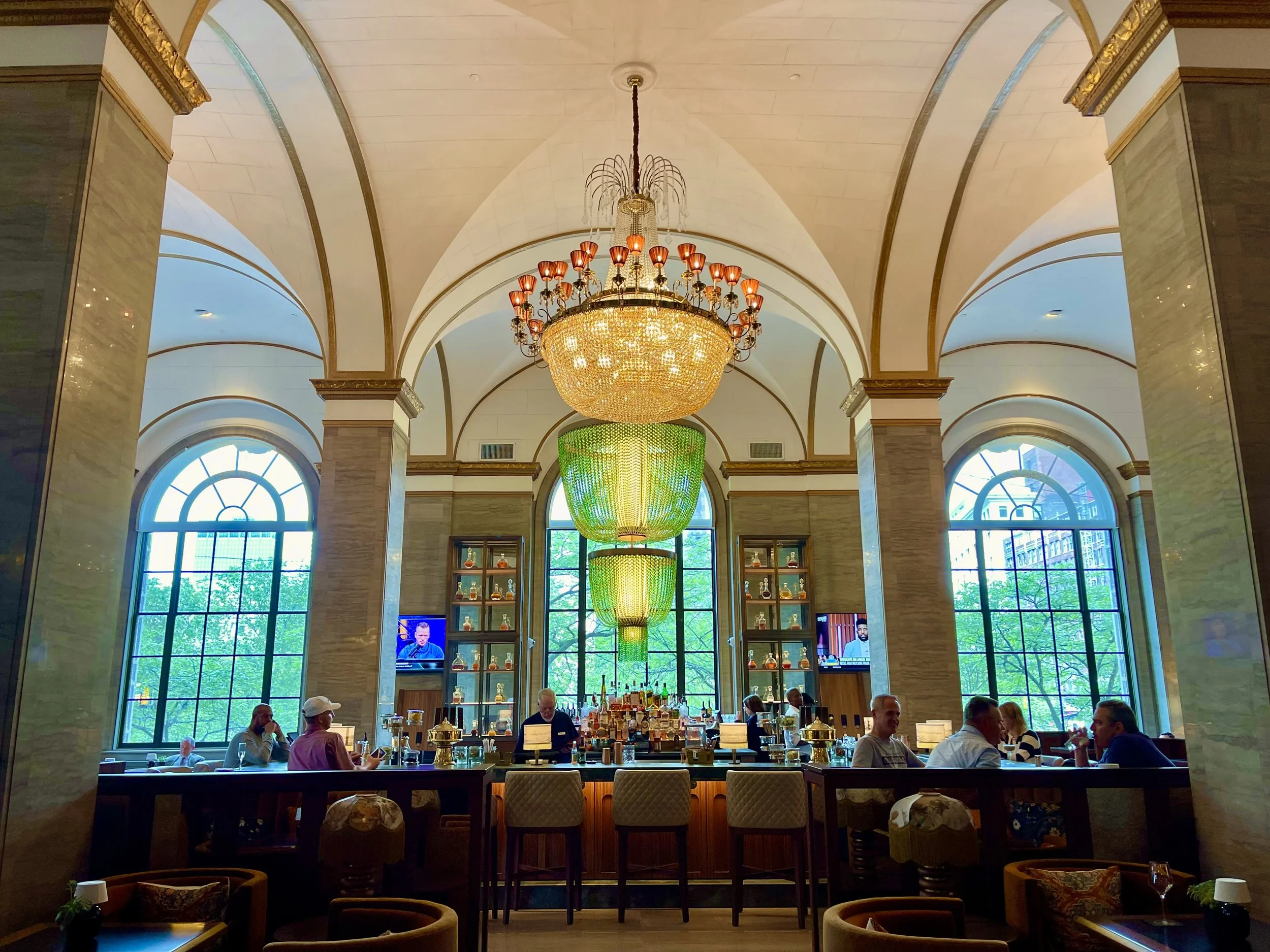 Hotel Cleveland’s Maker bar and restaurant features this beautiful shamrock-colored chandelier.
